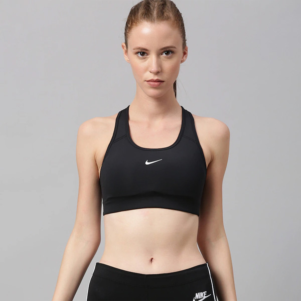 Special Technologies : Engineered with DRI-FIT Technology, Product Details : Black solid full-coverage Sports bra, Lightly Padded and Non-Wired seamless cups, Regular straps and slip-on, Back style: Racerback, Feature: All Day Comfort, Warranty: 6 months against manufacturing defects (not valid on products with more than 20% discount).