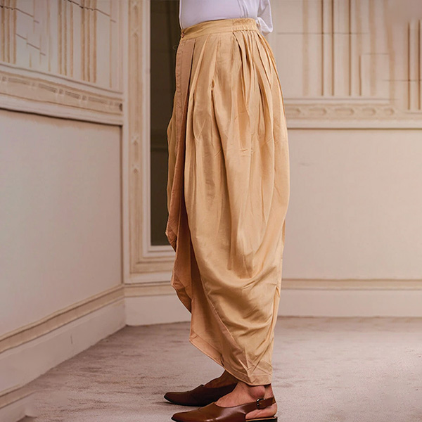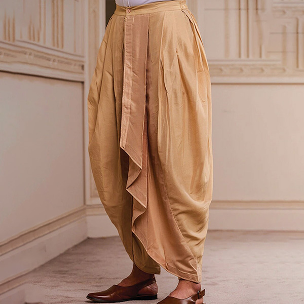 Men Beige Solid Draped Dhoti Pants