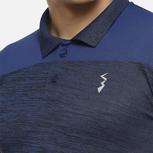 Men Blue Colourblocked Polo Collar Sports T-shirt