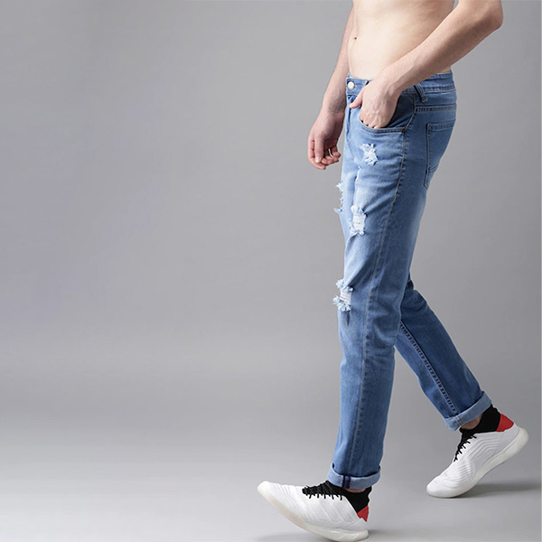 Men Blue Slim Fit Mid-Rise Highly Distressed Stretchable Jeans