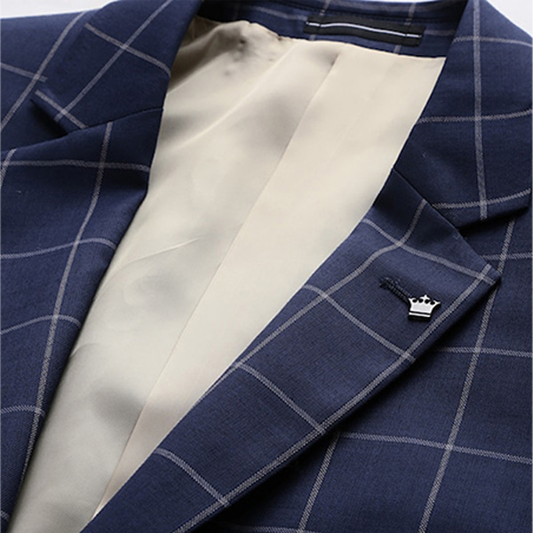 Men Navy Blue & Beige Slim Fit Checked Single Breasted Smart Casual Blazer