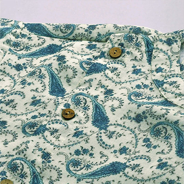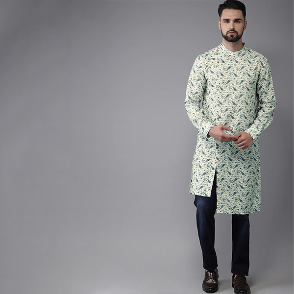Men Sea Green & Blue Printed Fusion Straight Kurta
