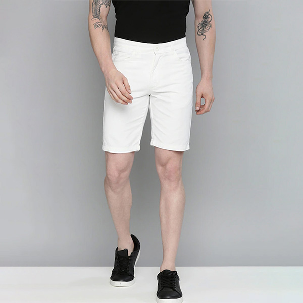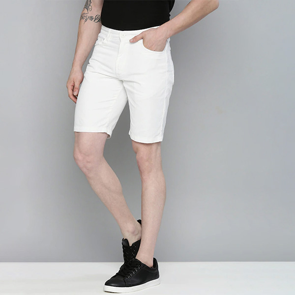 White solid mid-rise chino shorts, has 5 pockets, zip closure