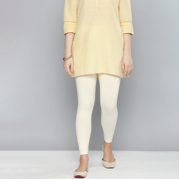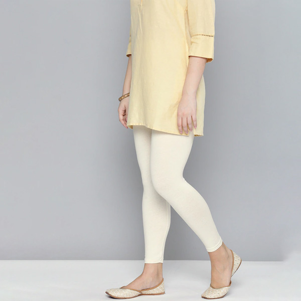 Women Off-White Solid Leggings