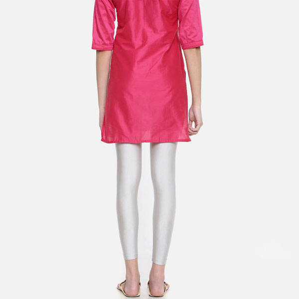 Women Silver-Toned Solid Skinny Fit Shimmer Ankle-Length Leggings