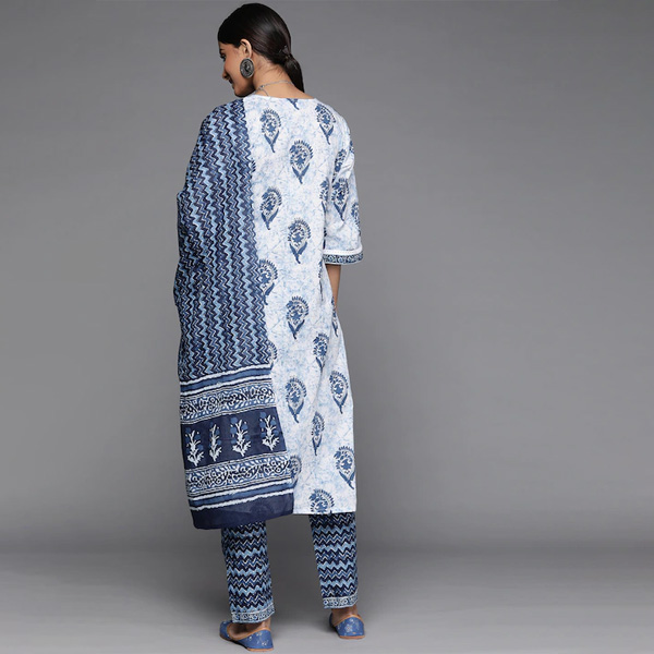 Women White Paisley Motifs Printed Pure Cotton Kurta with Trousers & With Dupatta